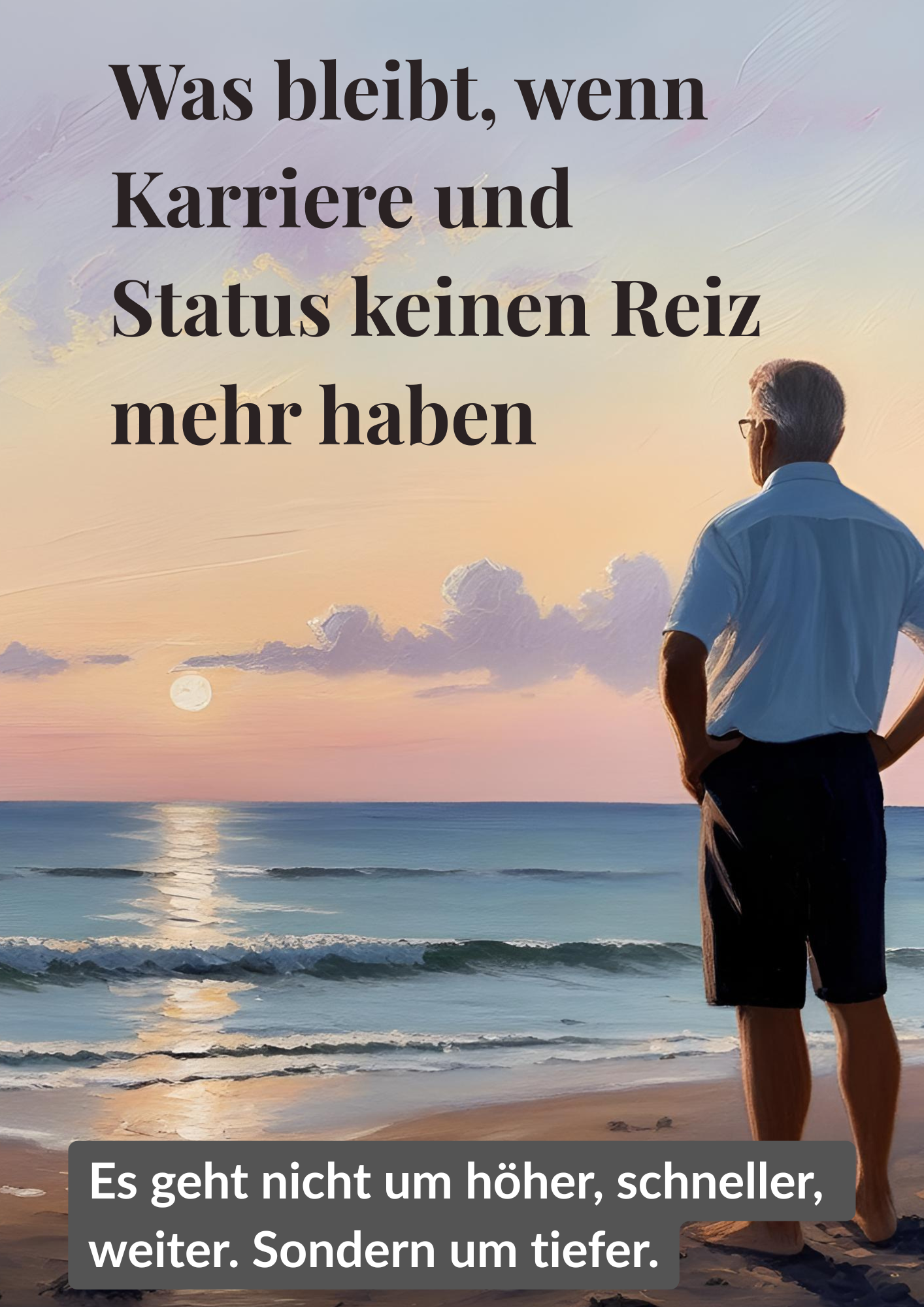 Was zählt wirklich? Jetzt, in diesem Leben, in dieser Zeit? Was bleibt von mir, wenn der Applaus verstummt und die Rollen fallen? Und wer bin ich, wenn ich nicht mehr leiste, sondern einfach nur bin? Solche Fragen lassen sich oft nicht in einer Sitzung beantworten. Aber sie verdienen eine Raum - und verlässliche Begleitung.